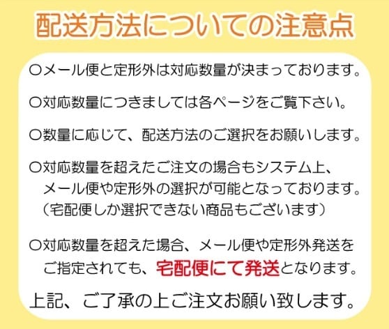 ※他の商品と合わせてメール便対応数量を超えた場合、宅配便となります。