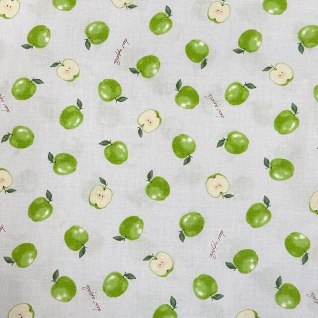 【生地 シーチング生地 かわいい柄 フルーツ柄 青りんご柄 ハンドメイド インテリア 雑貨 衣類 バッグ 服飾雑貨】
