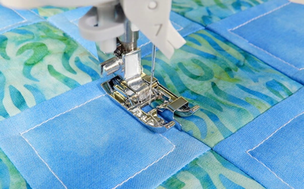 ★押えの左端に刻線があり、アウトラインキルティングの縫い代の目安になります。